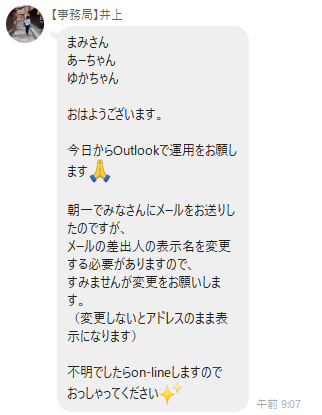 outlookに移行早々